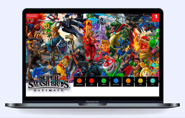 The official Super Smash Bros. Ultimate website is unorthodox in the approach to alignment and design patterns. I found it difficult to identify any patterns in alignment and spacing because each page seemed to have followed an independent set of paramaters. However, I found uncovering the website's design patterns to be the most interesting phase of this project. Designing a new feature for Super Smash Bros. Ultimate that followed branding guidlines was challenging, but rewarding nonetheless.